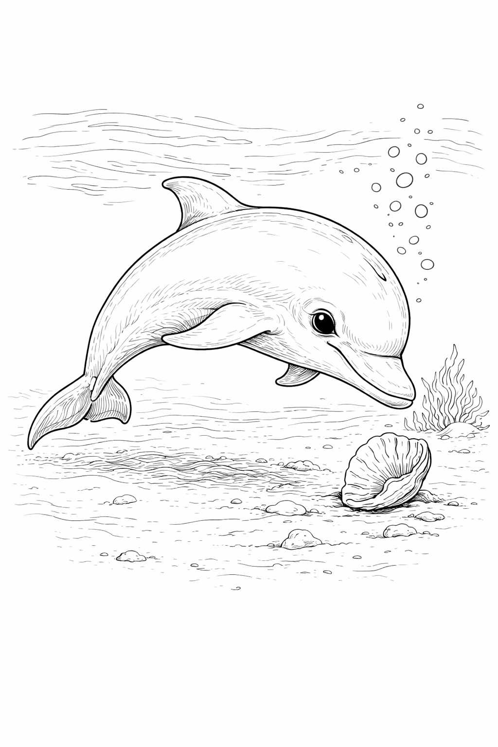 Baby Dolphin by Shell Coloring Page