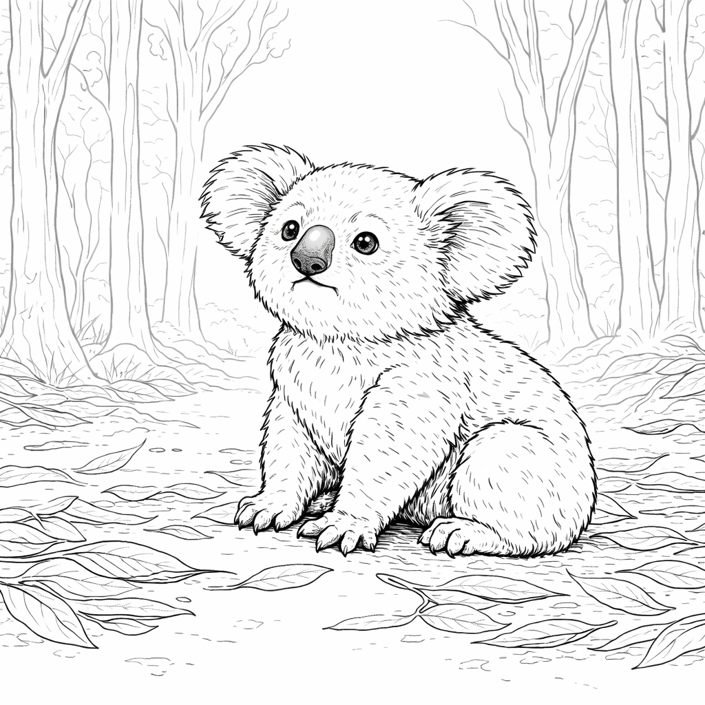 Download a baby koala coloring page from Creative Coloring World. Enjoy this printable baby animal design for kids and adults.