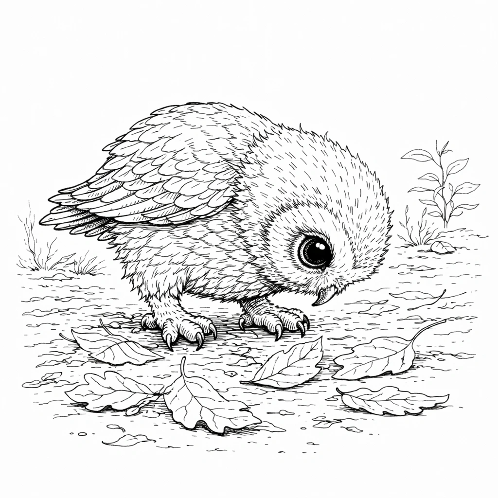 Baby Owl Looking Down Coloring Page