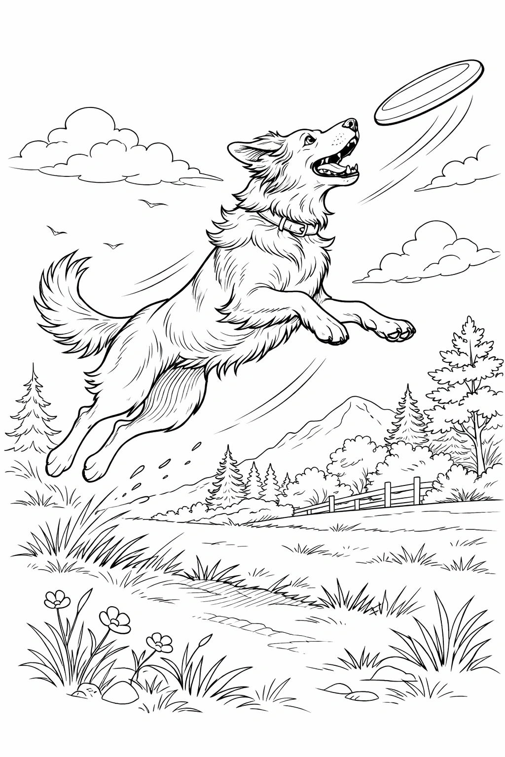 Download a dog leaping for frisbee coloring page from Creative Coloring World. Enjoy this printable dog design for kids and adults.