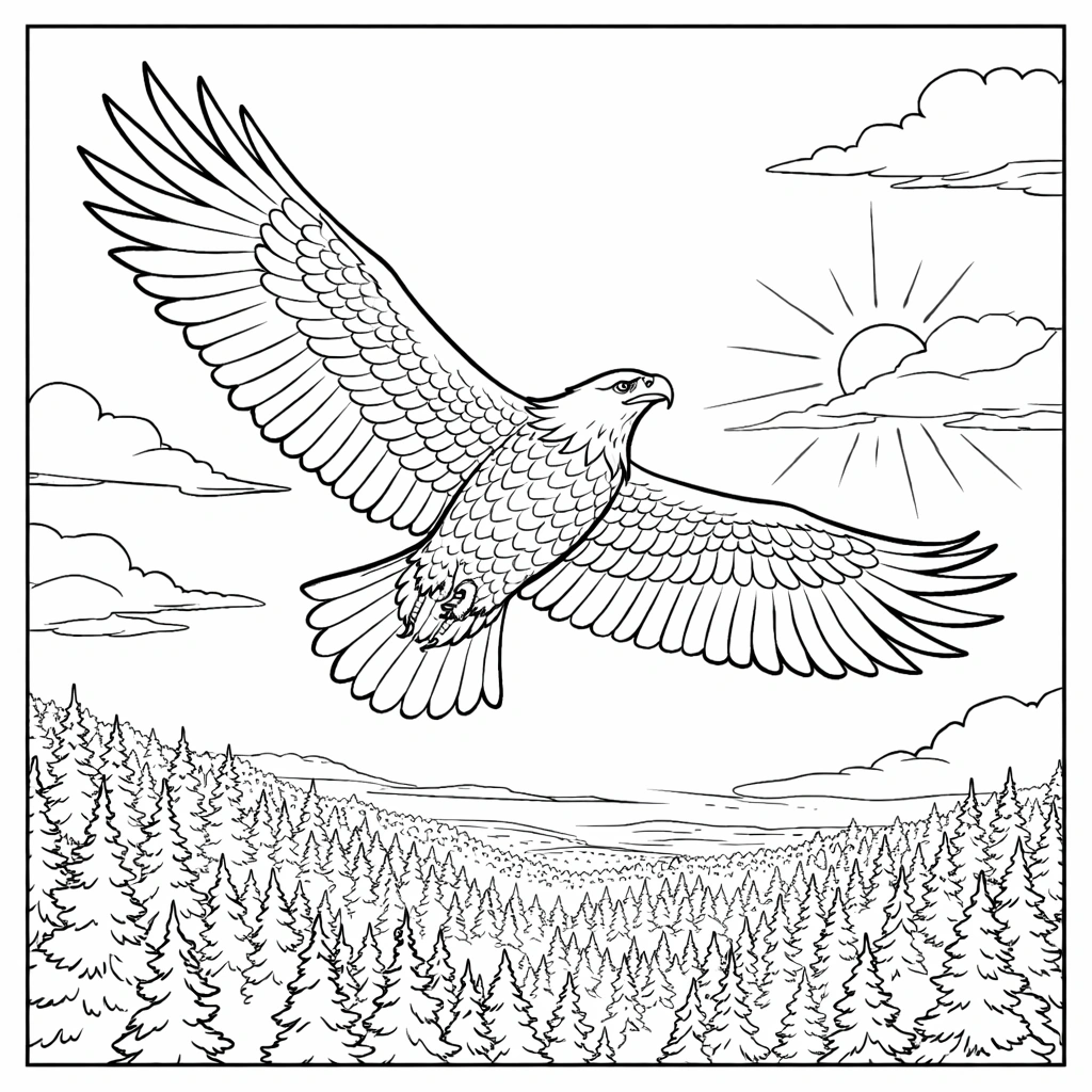 Download an eagle flying over forest coloring page from Creative Coloring World. Enjoy this printable eagle design for kids and adults.