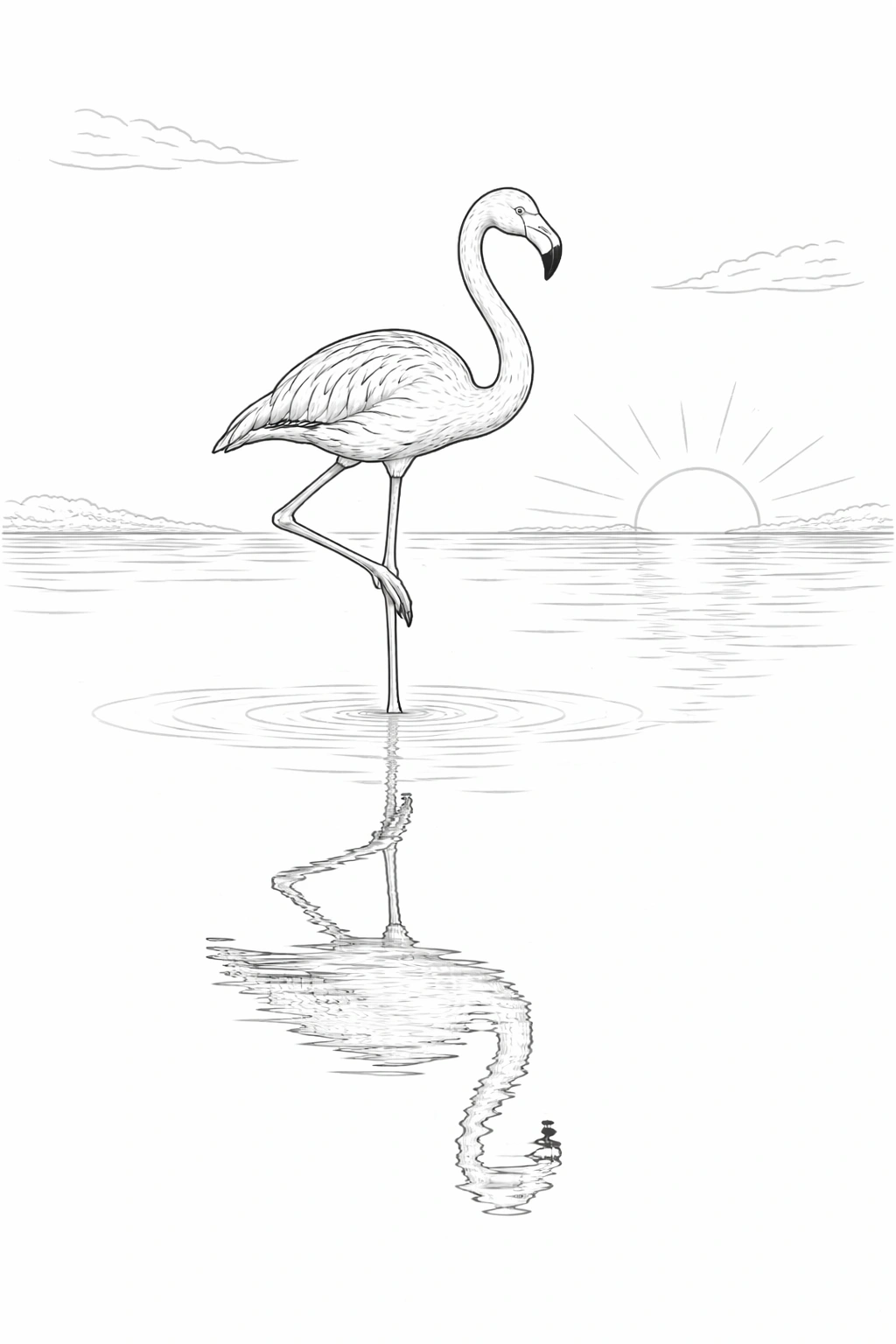 Download a flamingo reflection coloring page from Creative Coloring World. Enjoy this printable flamingo design for kids and adults.