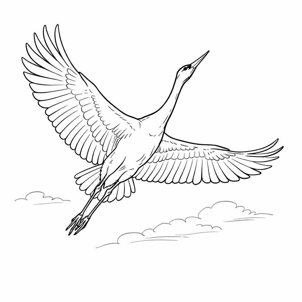 Download a flying crane coloring page from Creative Coloring World. Enjoy this printable crane design for kids and adults.
