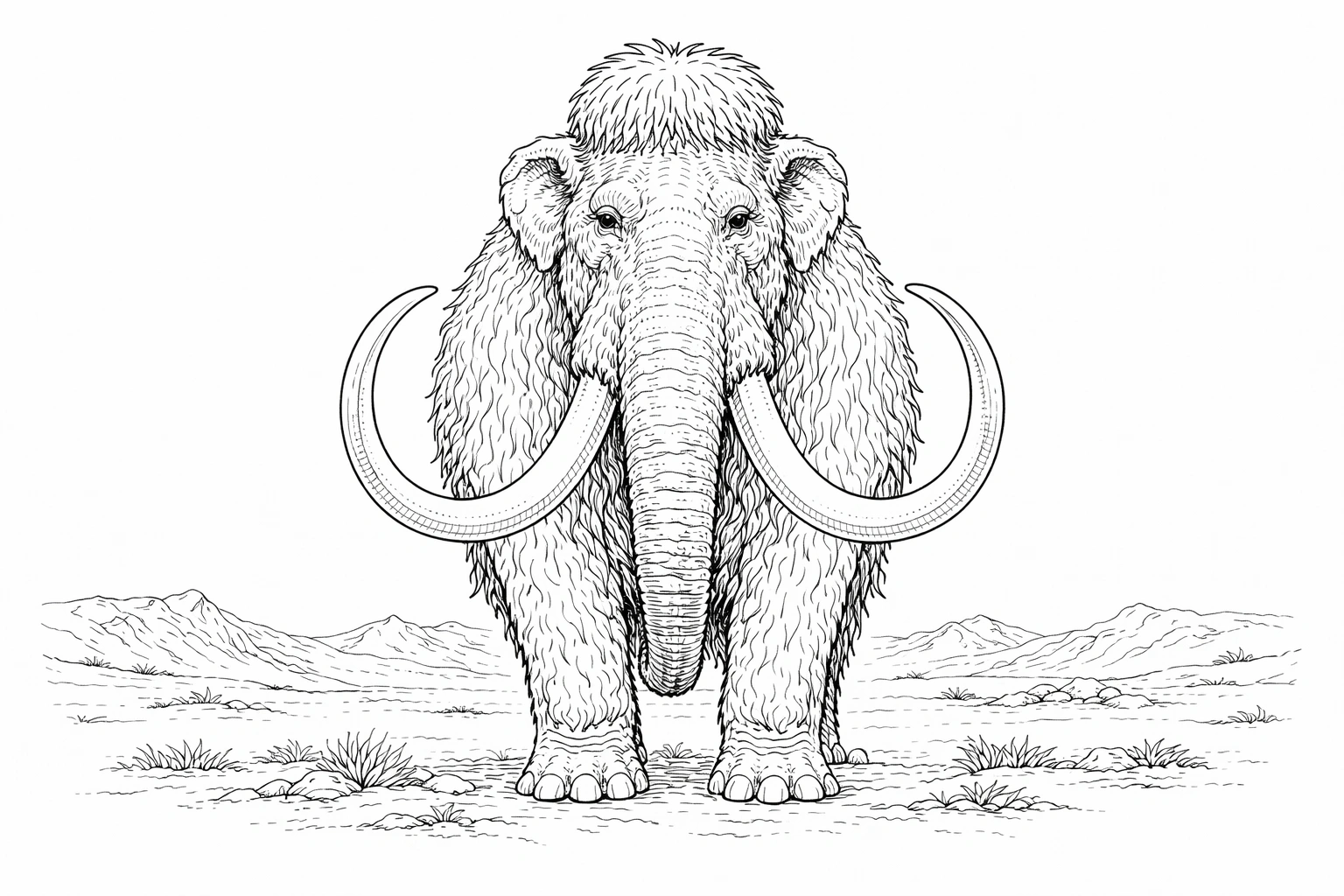 Front Woolly Mammoth Portrait Coloring Page