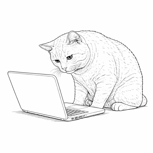 Download and print this funny cat coloring page for adults. A fun black and white line art design for relaxing coloring.