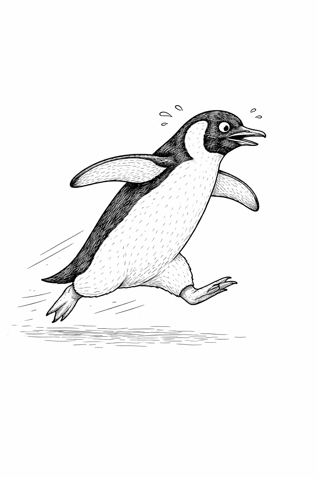 Download and print this funny penguin coloring page for adults. A fun black and white line art design for relaxing coloring.