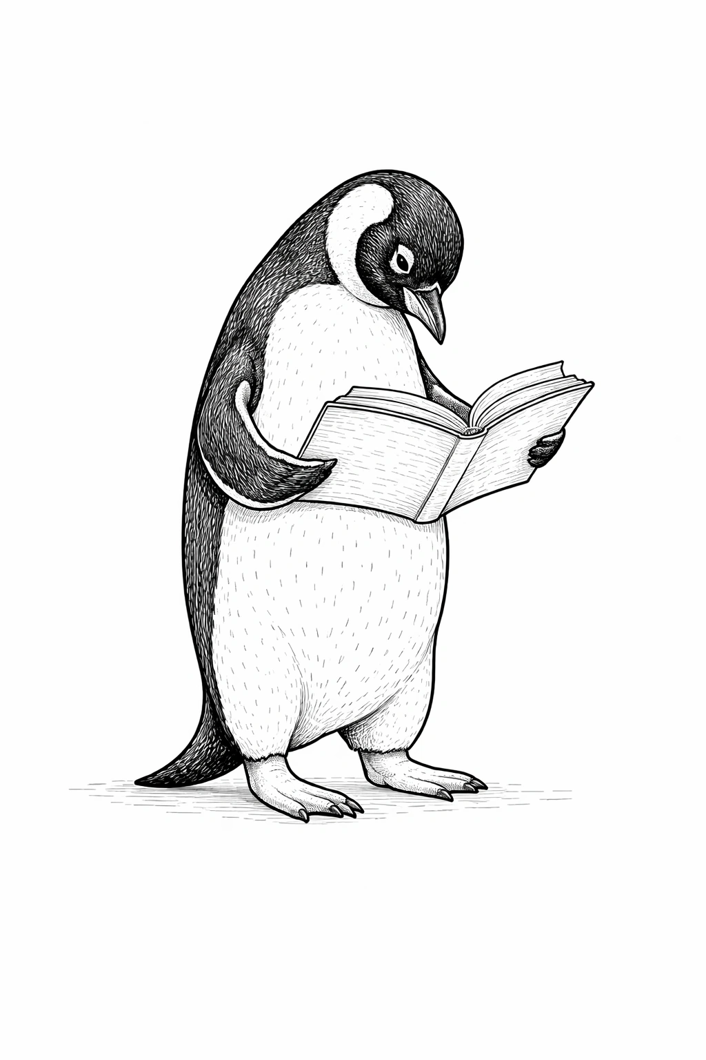 Download and print this funny penguin coloring page for adults. A fun black and white line art design for relaxing coloring.
