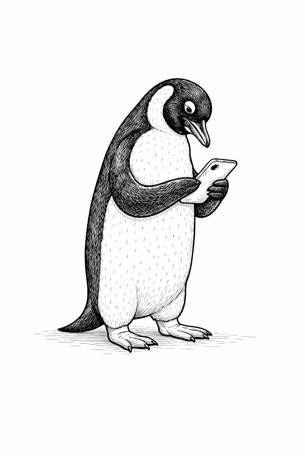 Download and print this funny penguin coloring page for adults. A fun black and white line art design for relaxing coloring.