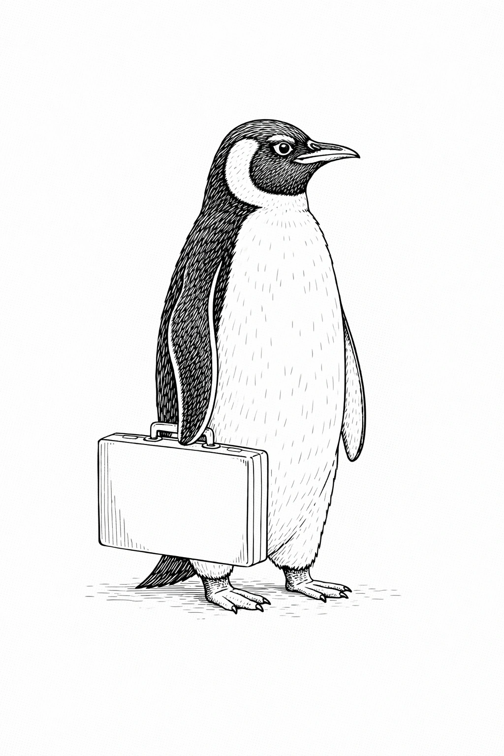 Download and print this funny penguin coloring page for adults. A fun black and white line art design for relaxing coloring.
