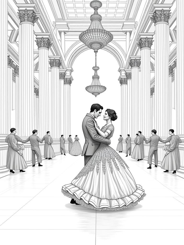 Imperial Ballroom Dance Line Art Coloring Page for Adults