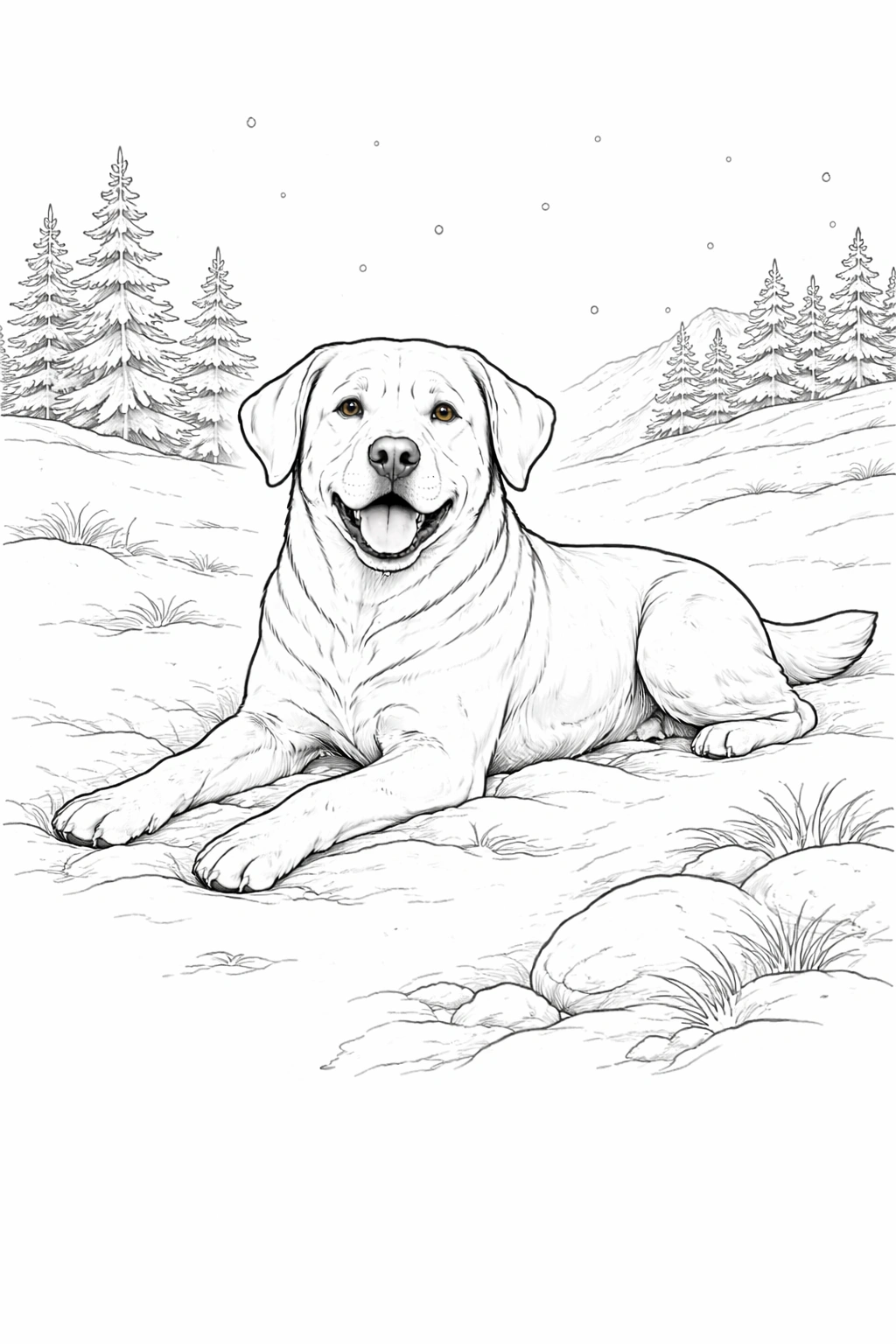 Labrador Retriever Dog Resting in Snow Coloring Page