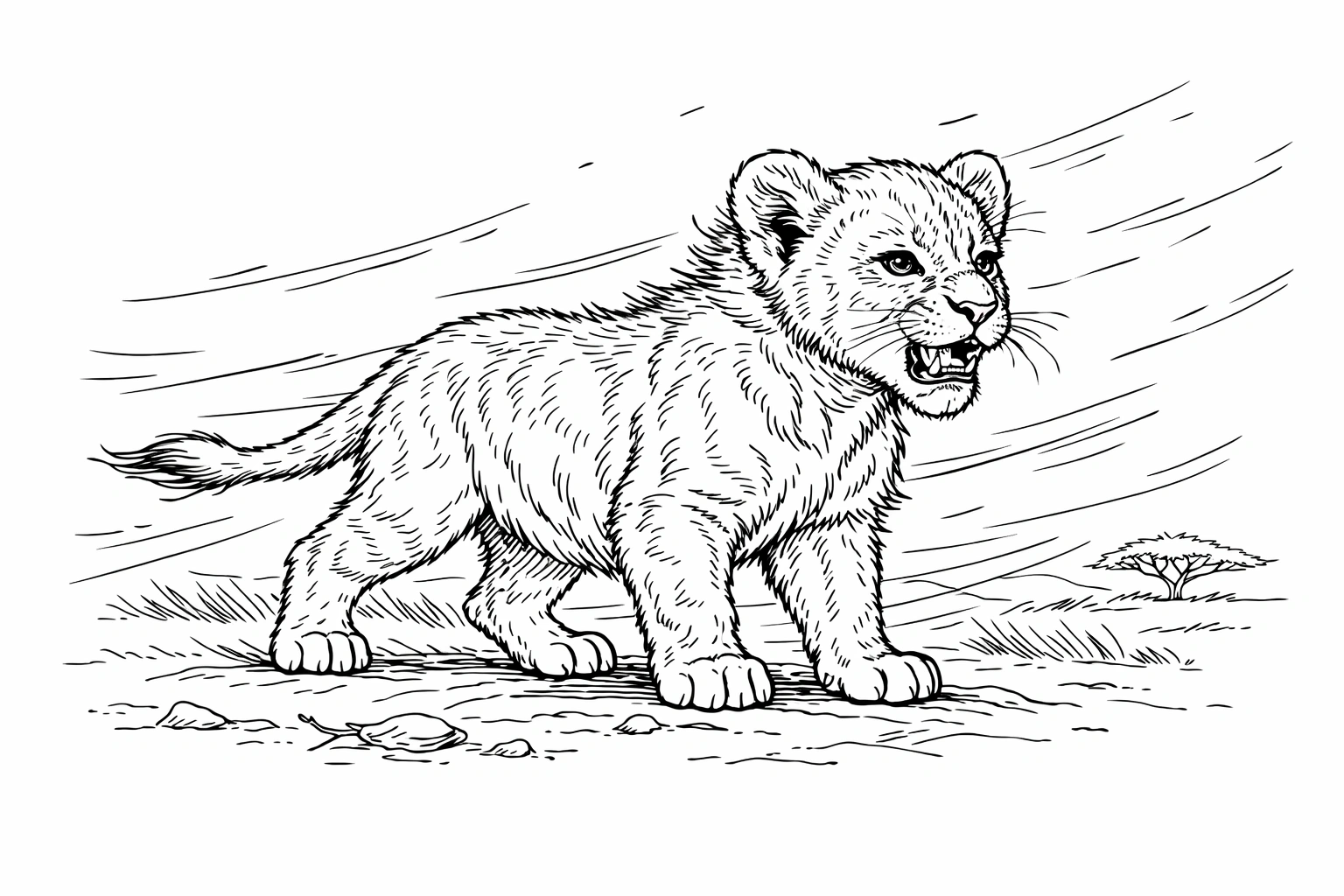 Lion Cub Walking Coloring Page