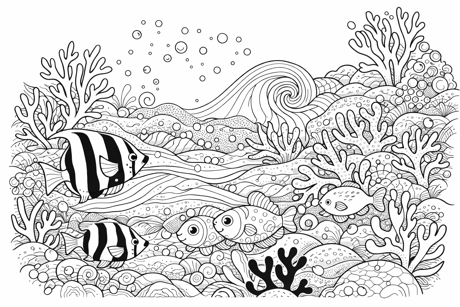 Dive into the depths of the ocean with our Ocean Wonders: Underwater Exploration Coloring Page. Swim alongside exotic fish and intricate coral reefs in this detailed design, ideal for adults who find peace and inspiration in the beauty of the underwater world.