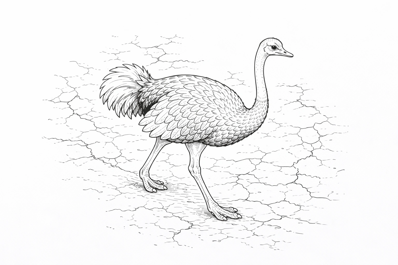 Ostrich Walking on Dry Ground Coloring Page