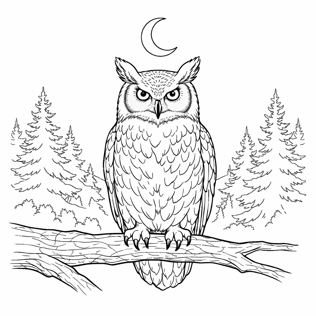 Owl Under Moon Coloring Page