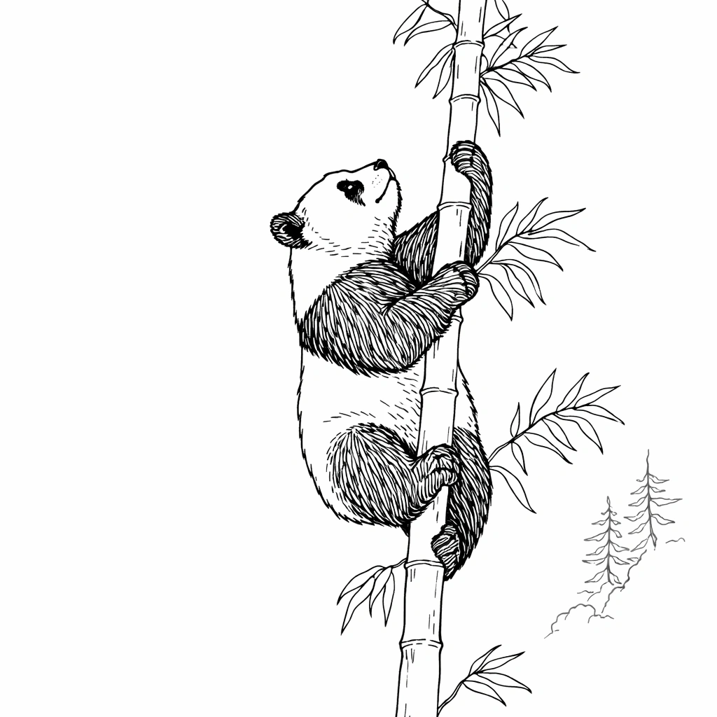 Panda Climbing Bamboo Coloring Page