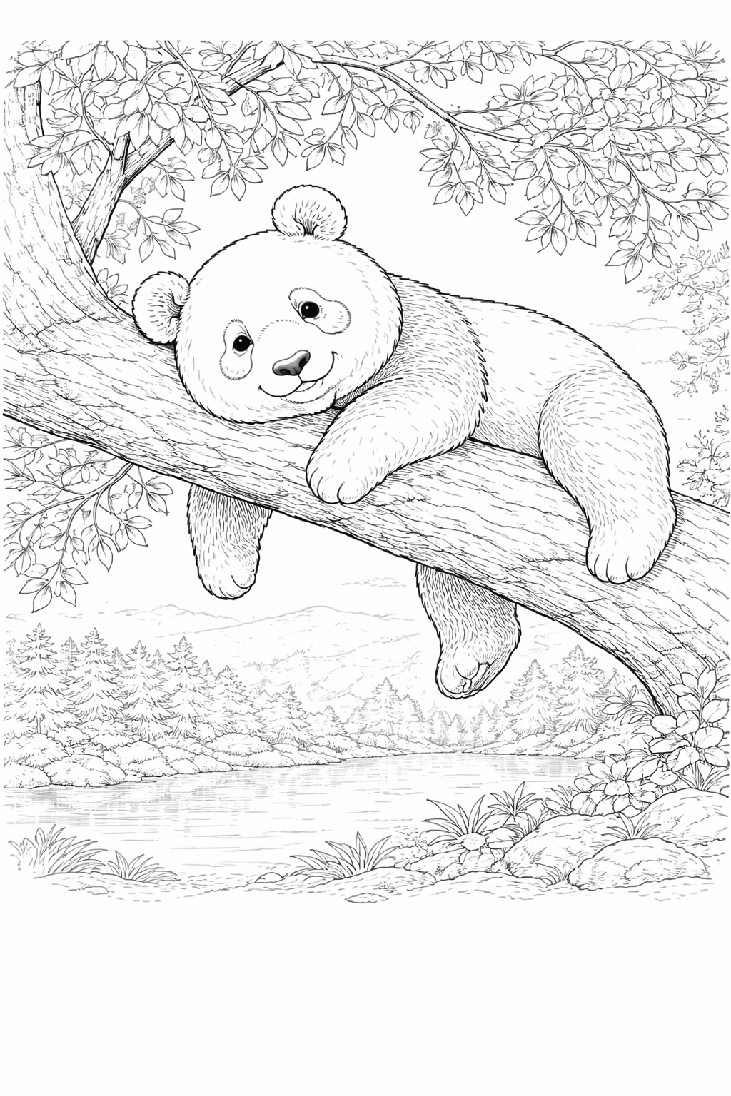 Download a panda resting on tree branch coloring page from Creative Coloring World. Enjoy this printable panda design for kids and adults.