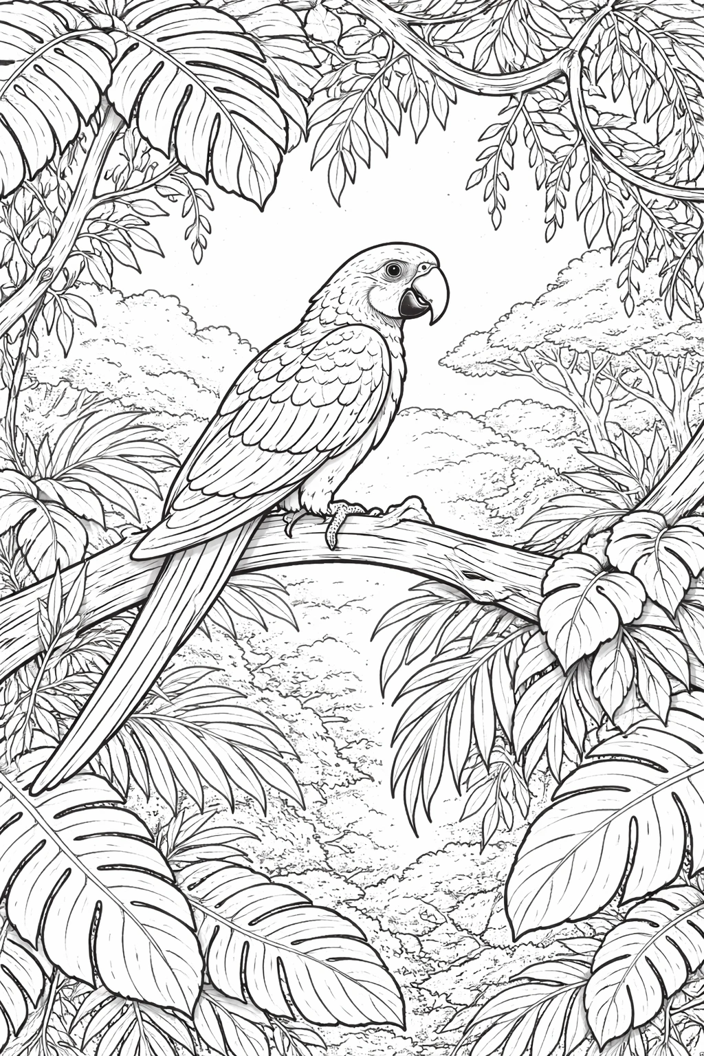 Tags bird coloring page, jungle coloring page, parrot coloring page, parrot printable, printable coloring page