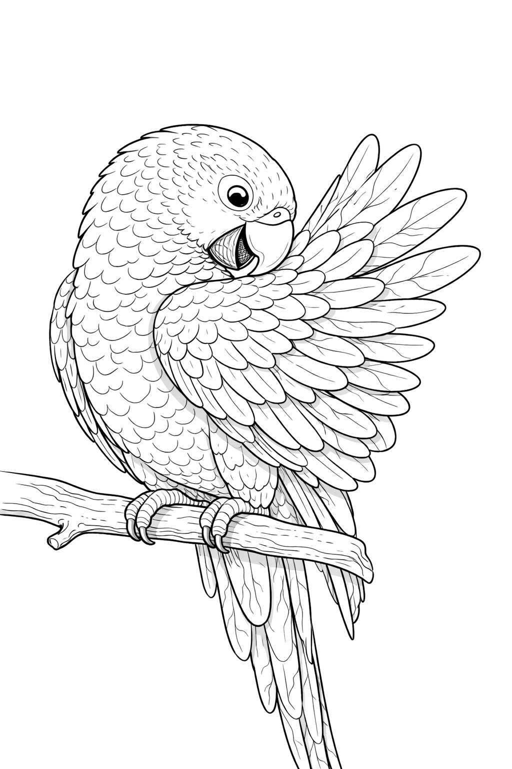 Parrot Preening Feathers Coloring Page