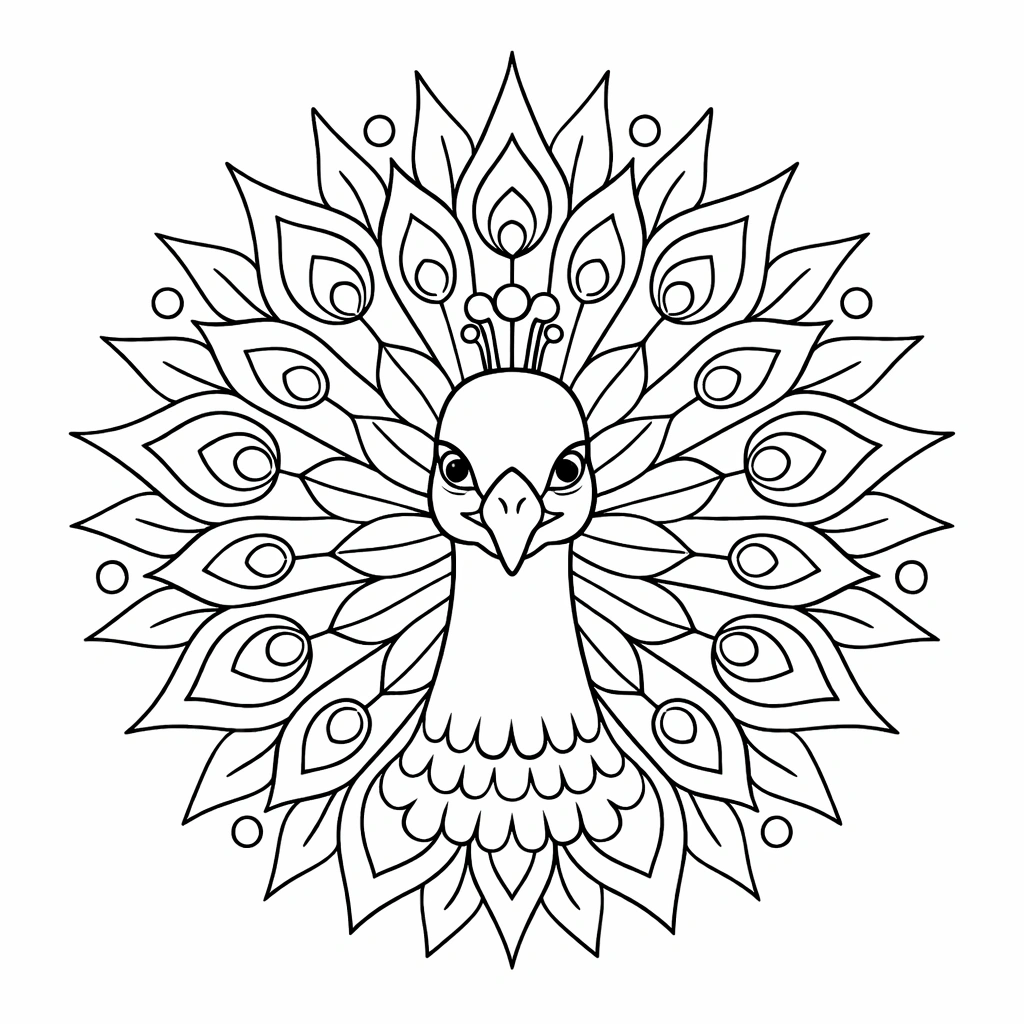 Download and print this peacock coloring page. A detailed black and white printable design for relaxing coloring.
