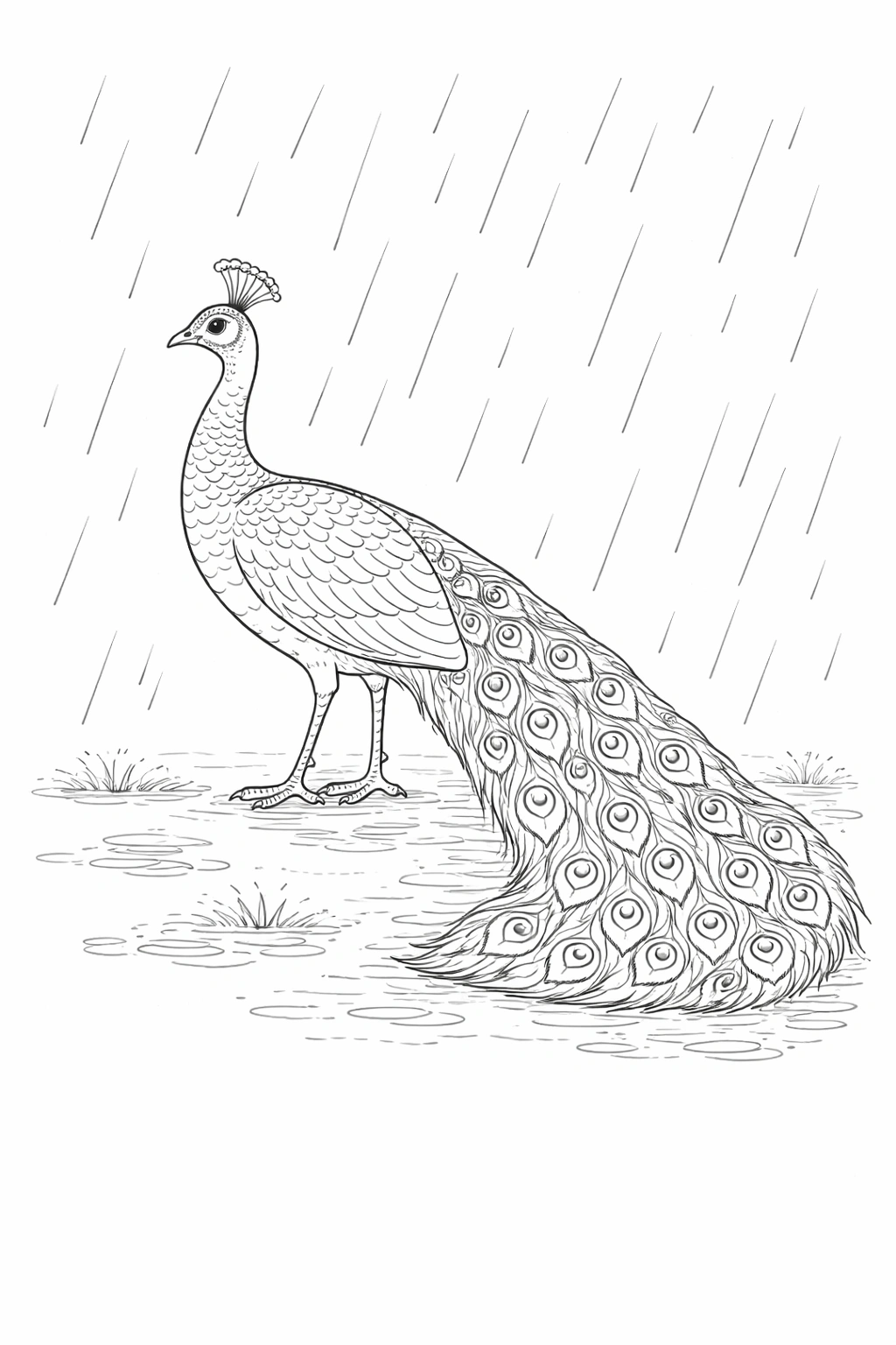 Tags bird coloring page, peacock coloring page, peacock printable, printable coloring page, rain coloring page