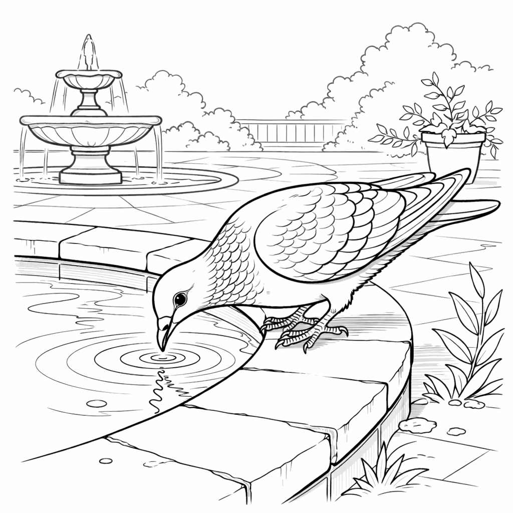 Tags bird coloring page, fountain coloring page, pigeon coloring page, pigeon printable, printable coloring page