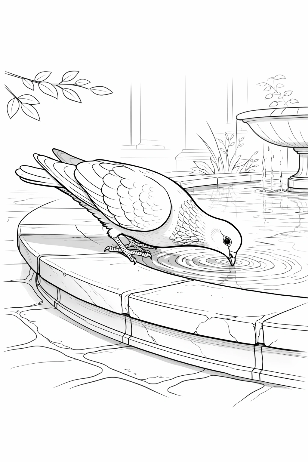 Download a pigeon drinking water coloring page from Creative Coloring World. Enjoy this printable pigeon design for kids and adults.