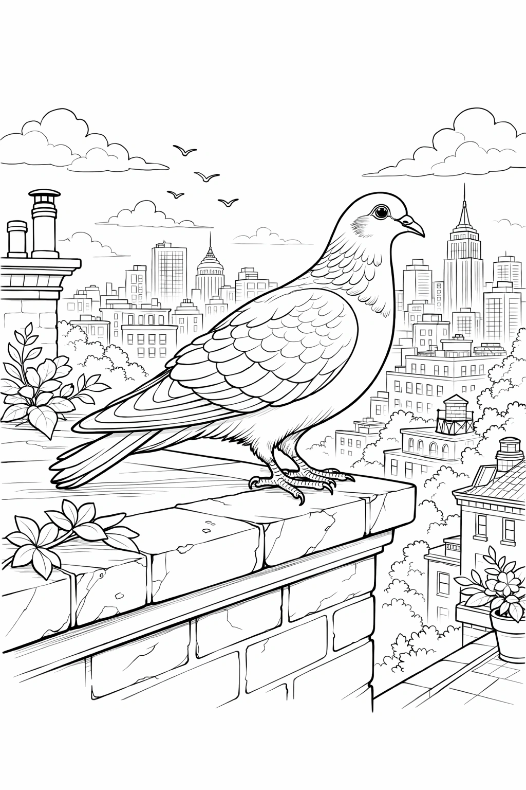 Download a pigeon on balcony coloring page from Creative Coloring World. Enjoy this printable pigeon design for kids and adults.