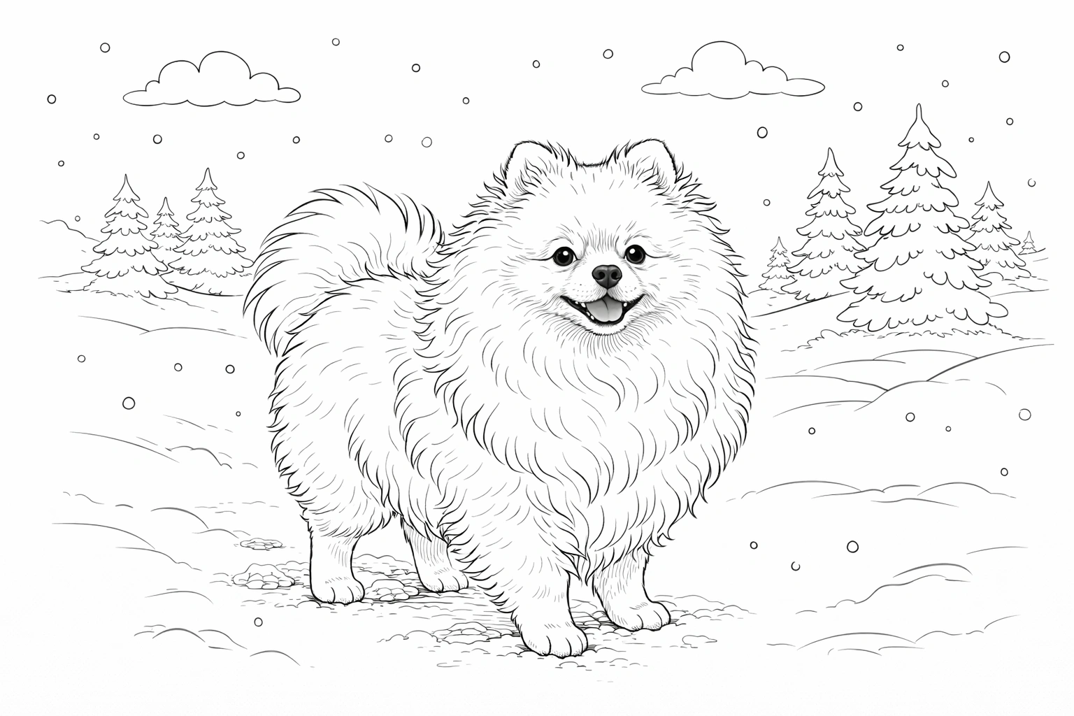 Download a Pomeranian cat in snow coloring page from Creative Coloring World. Enjoy this printable cat design for kids and adults.