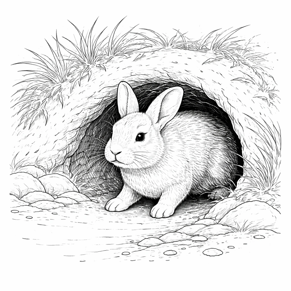Download a rabbit in burrow coloring page from Creative Coloring World. Enjoy this printable rabbit design for adults.