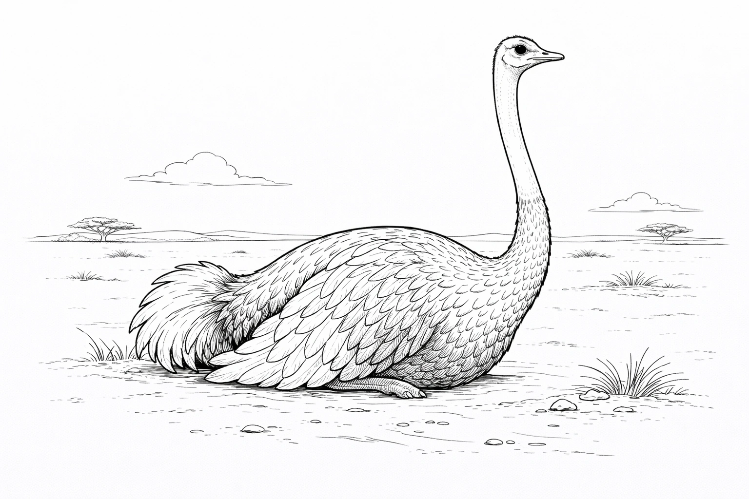 Resting Ostrich Coloring Page