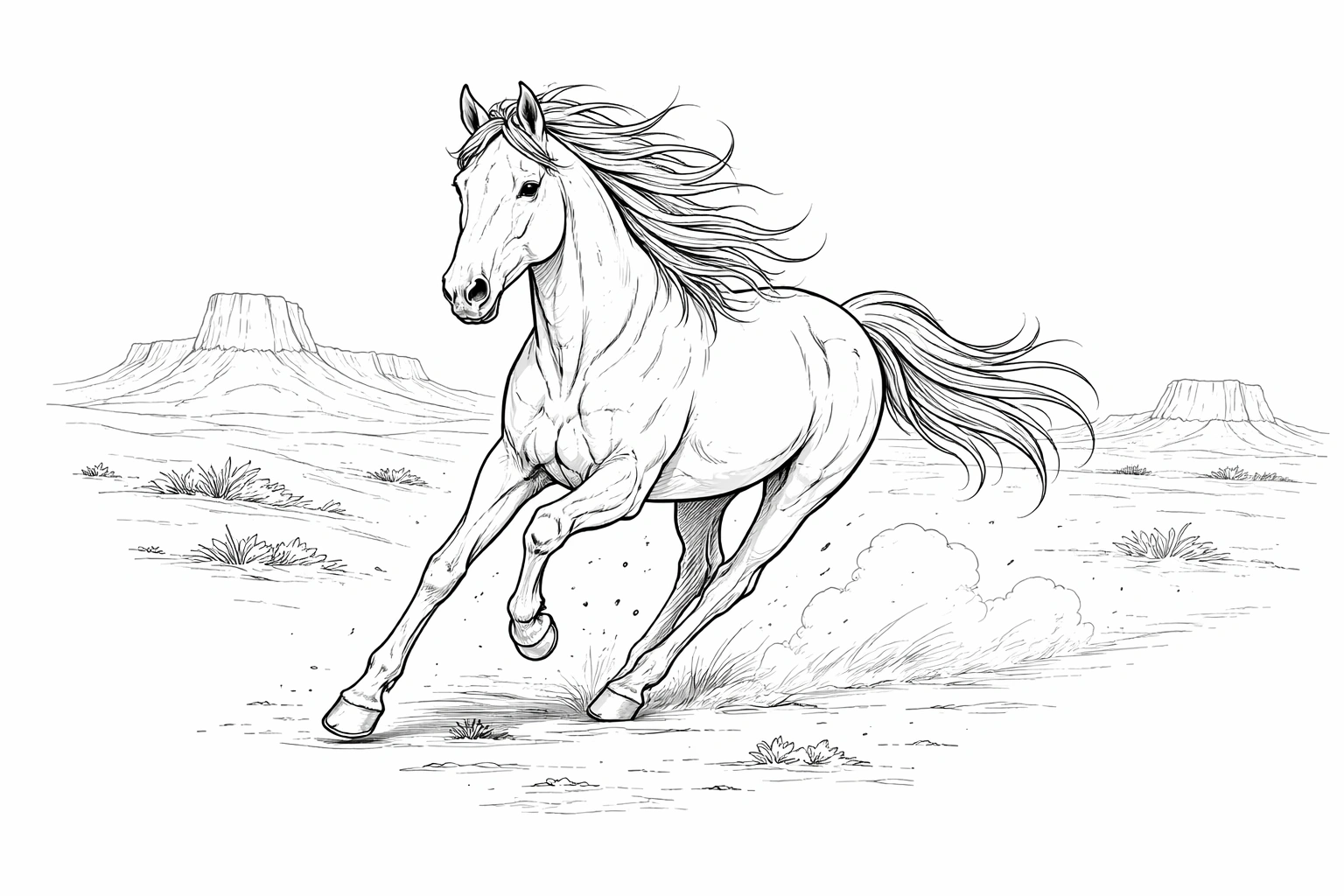 Download a mustang horse coloring page from Creative Coloring World. Enjoy this printable farm animal design for kids and adults.