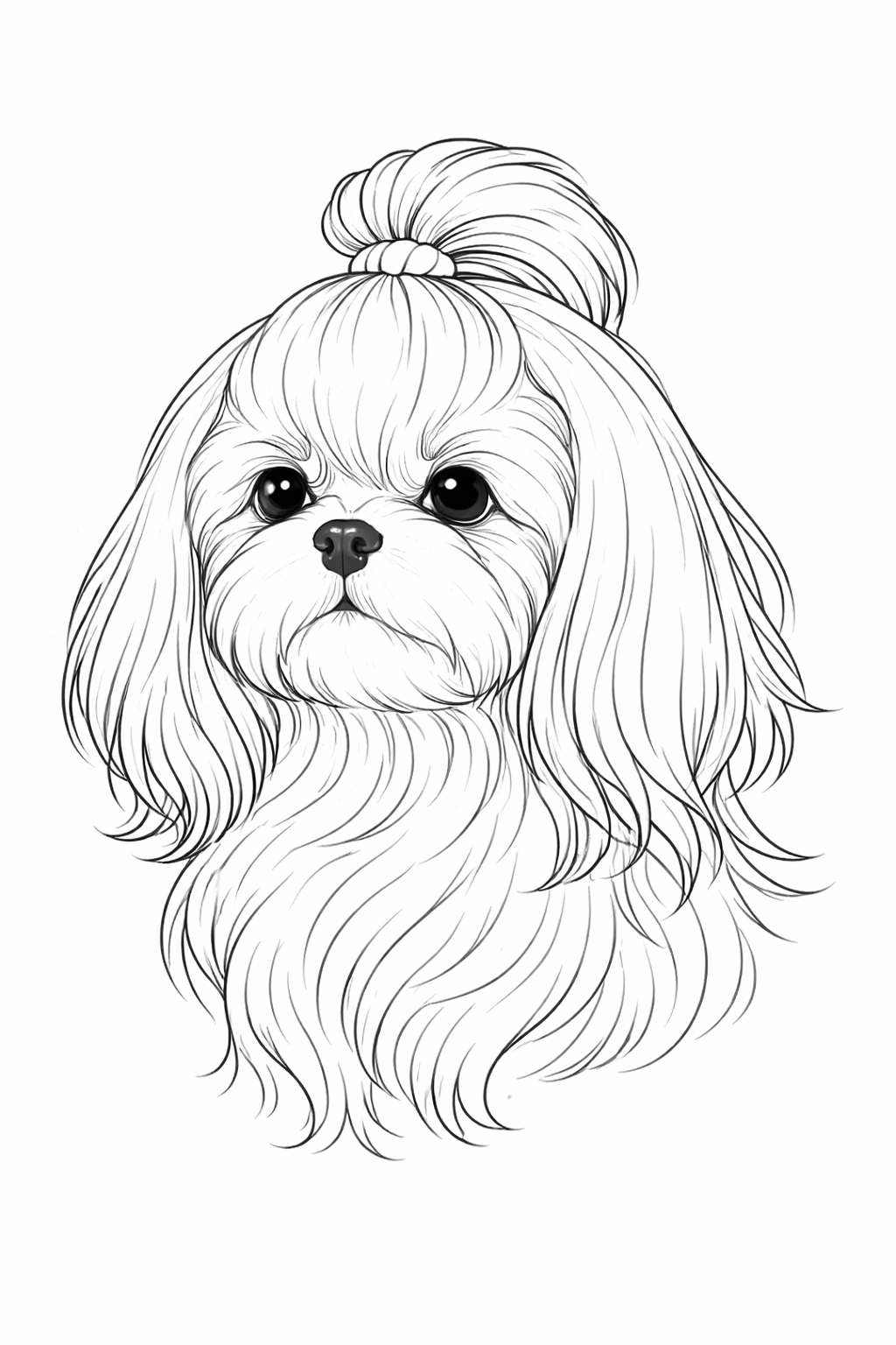 Download a Shih Tzu dog face portrait coloring page from Creative Coloring World. Enjoy this printable dog design for kids and adults.