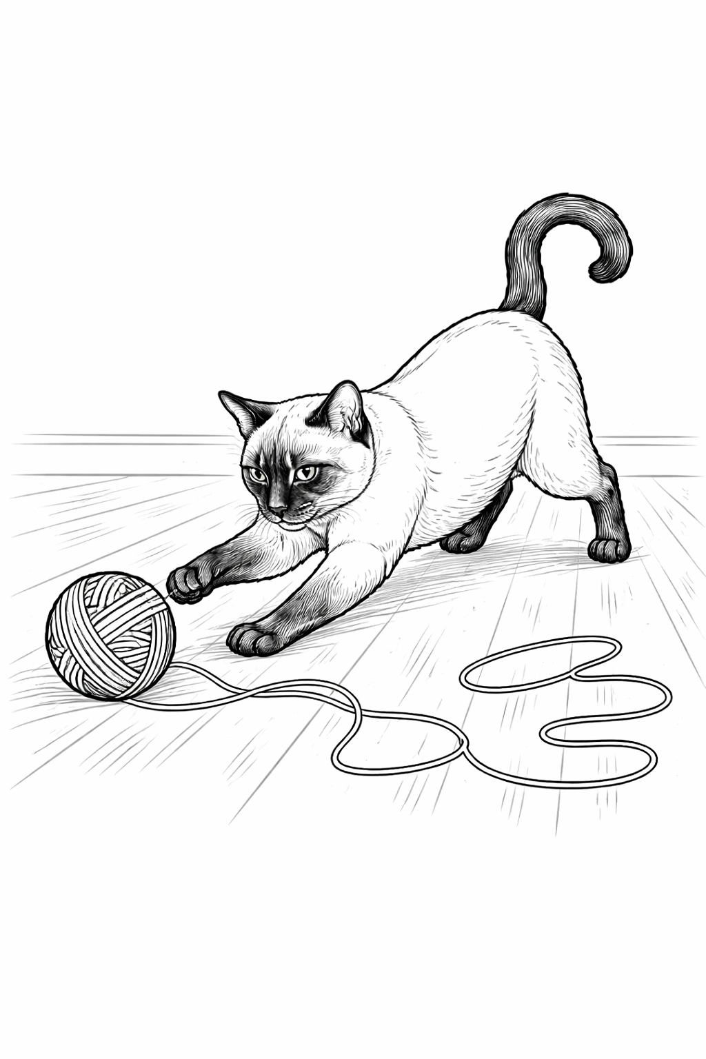 Siamese Cat Playing with Yarn Coloring Page