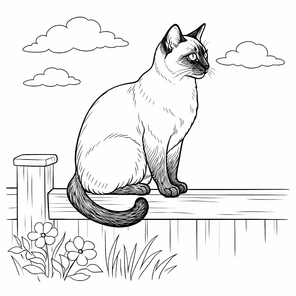 Siamese Cat Sitting Outdoors Coloring Page