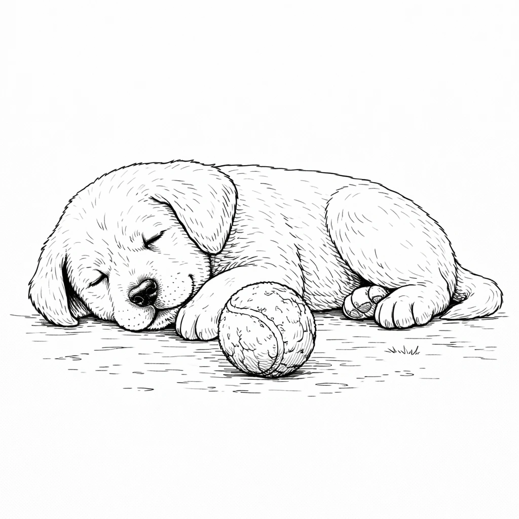 Sleeping Puppy with Ball Coloring Page