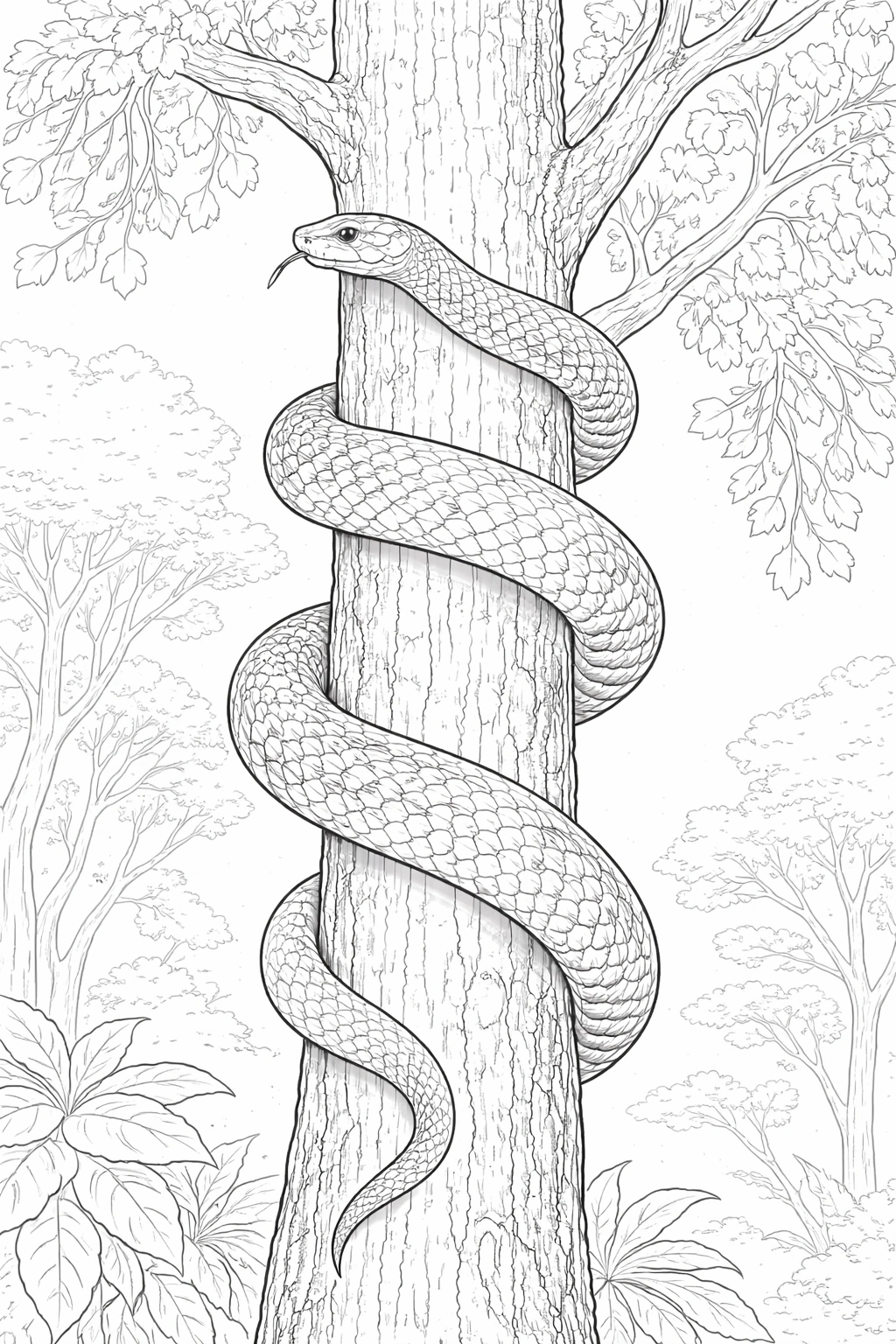 Download and print this snake coloring page. A detailed black and white printable design for relaxing coloring.