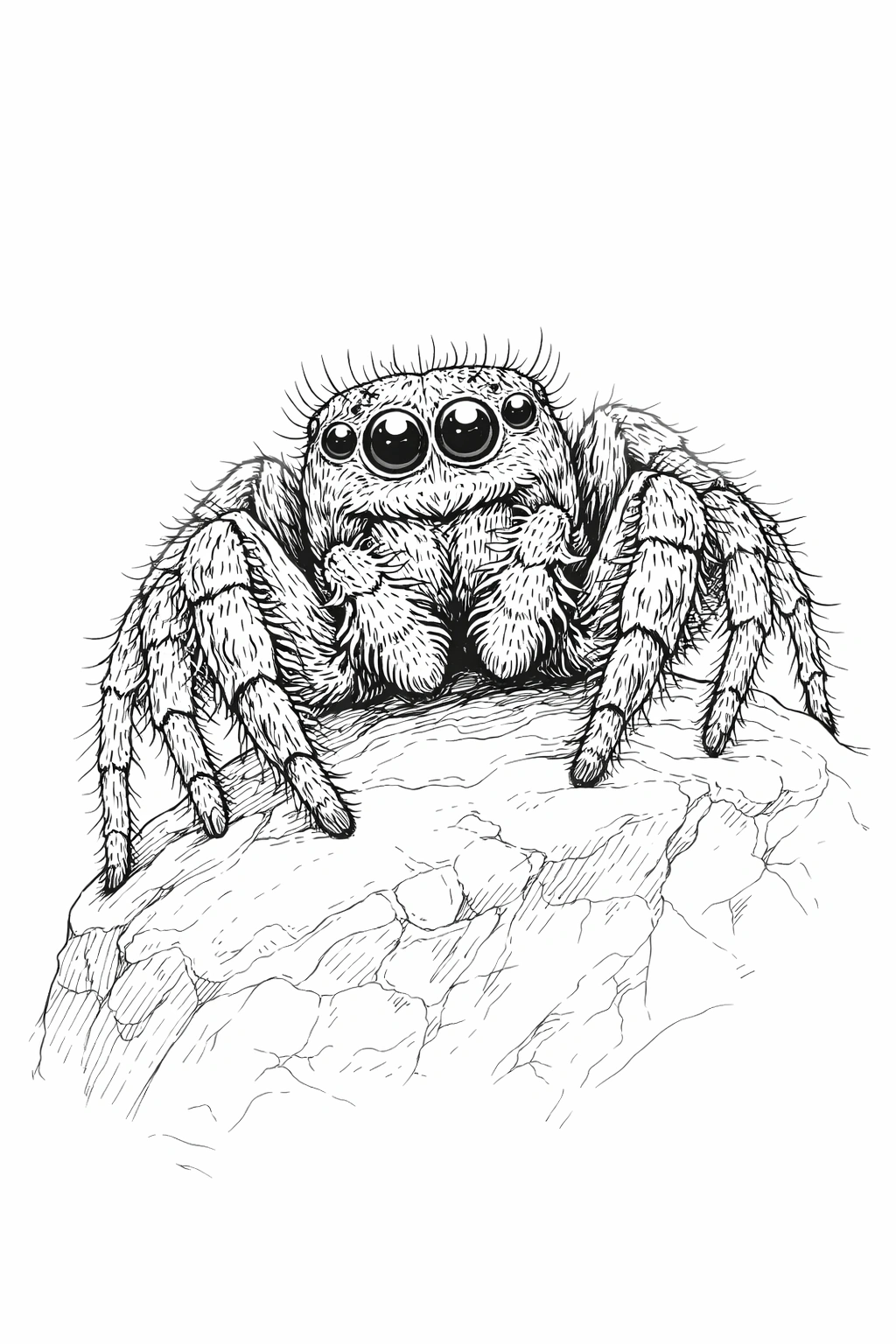 Download and print this spider coloring page. A detailed black and white printable design for relaxing coloring.