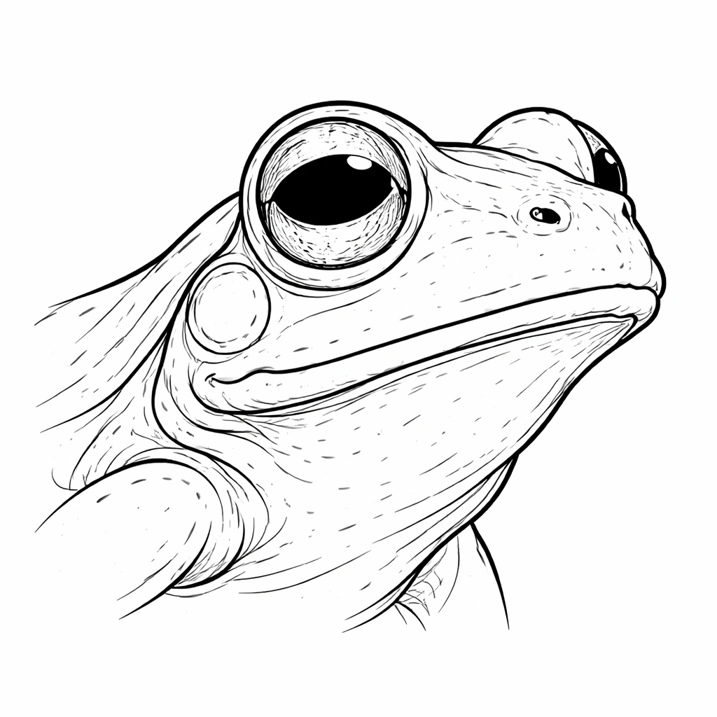 Download and print this toad coloring page. A detailed black and white printable design for relaxing coloring.