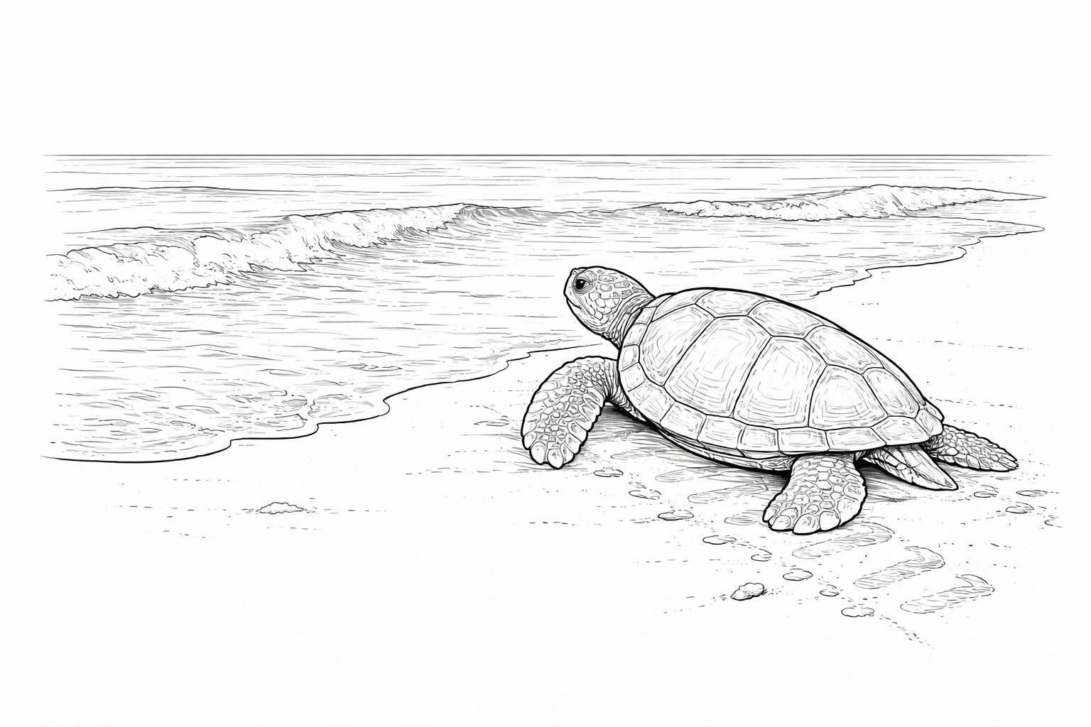 Download and print this turtle coloring page. A detailed black and white printable design for relaxing coloring.