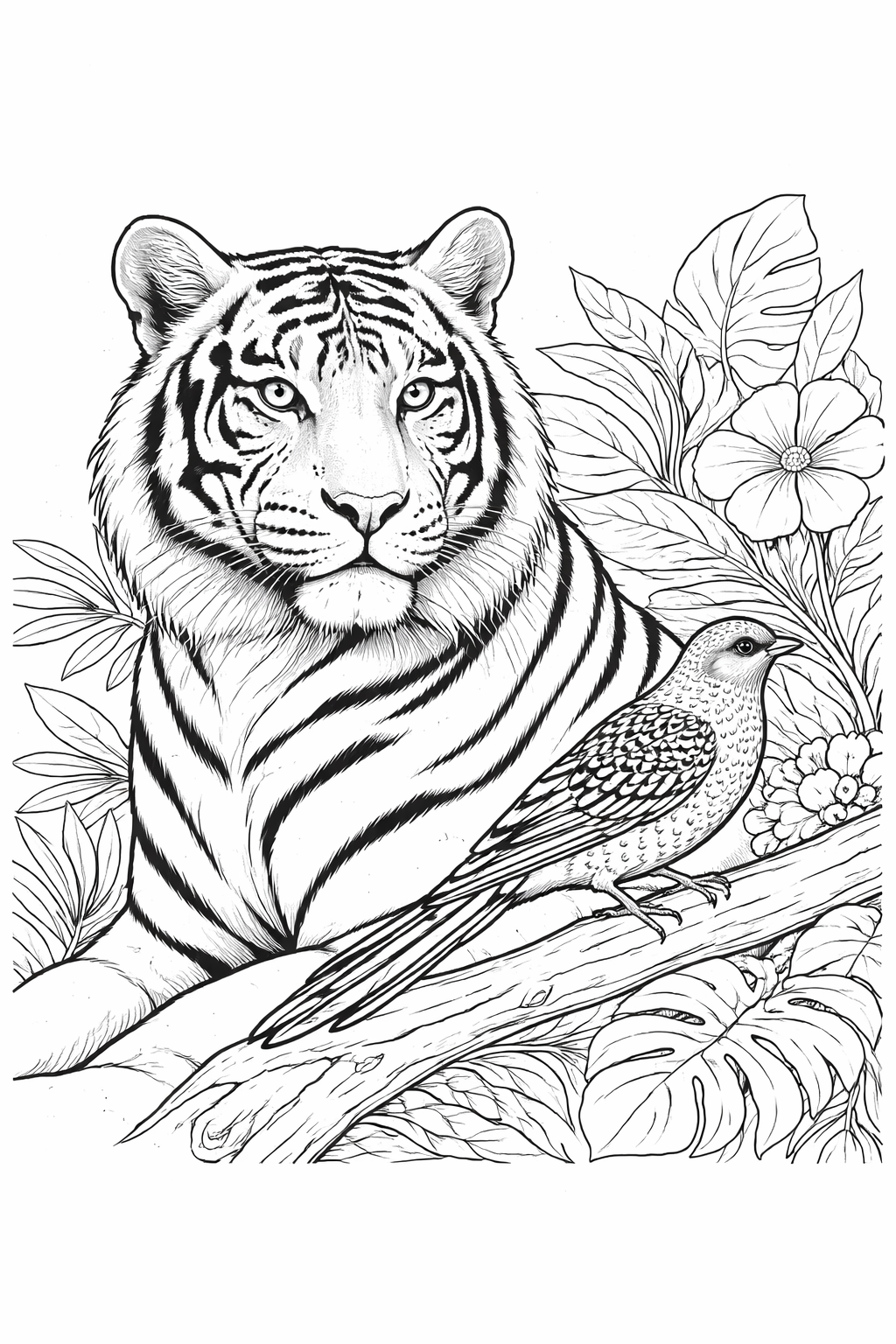 Celebrate the animal kingdom with “Wildlife Wonders,” a coloring page that brings the majestic beauty of wildlife into your home. This page, featuring a tiger and a leopard in a lush habitat, is perfect for nature lovers and wildlife enthusiasts.