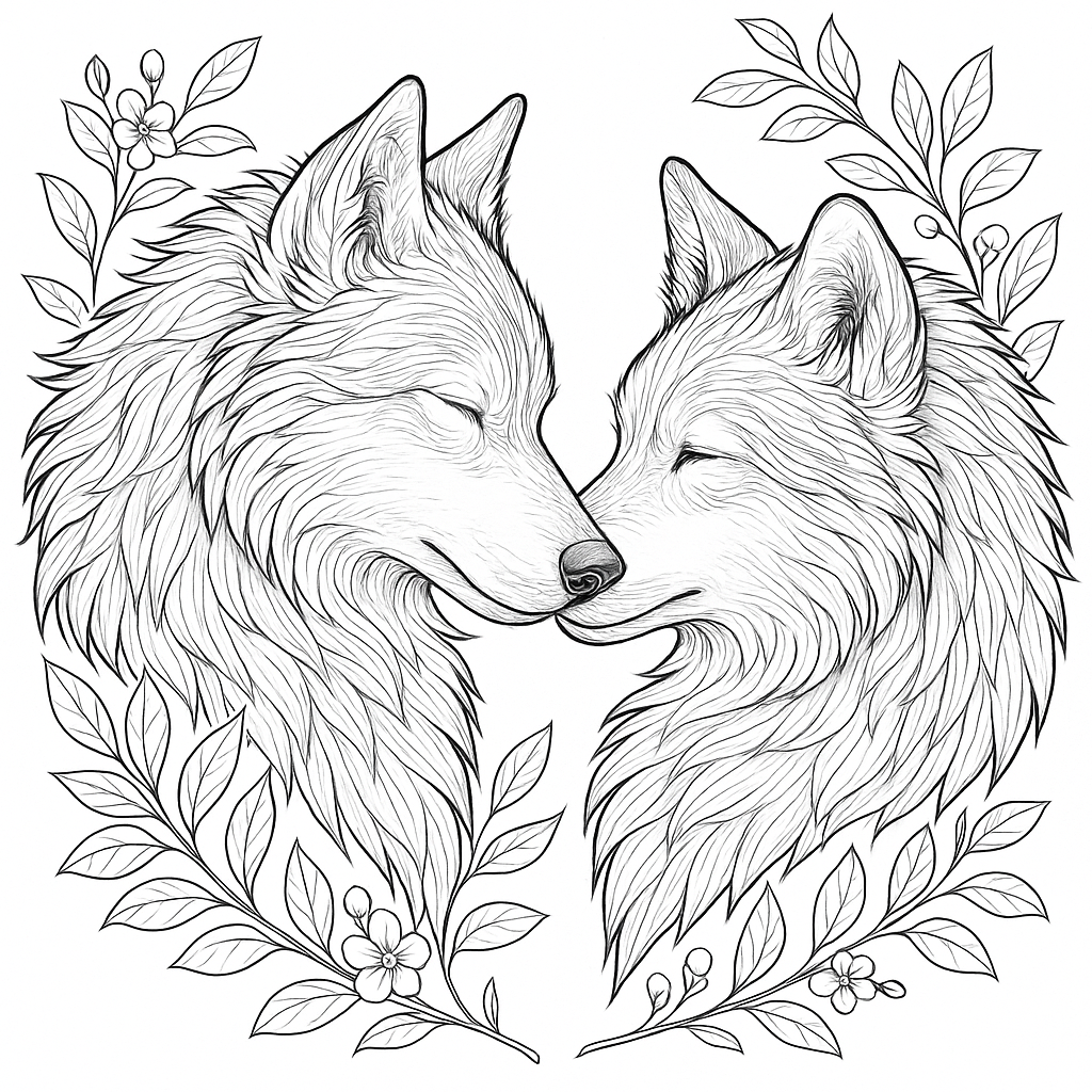 Wolf Couple Love Coloring Page #002