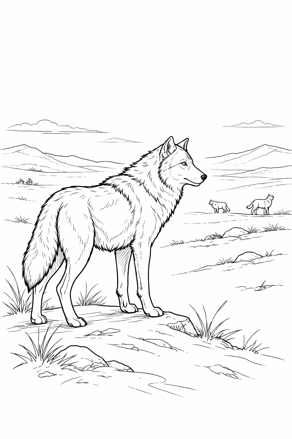 Download a wolf in snow field coloring page from Creative Coloring World. Enjoy this printable wolf design for kids and adults.
