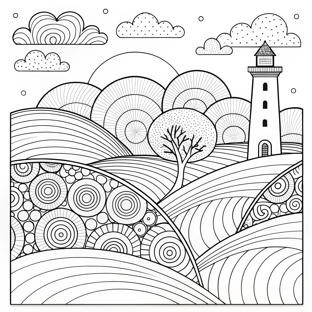 High-quality adult coloring page featuring abstract line-based landscape designs inspired by natural scenery such as mountains, rivers, hills, and scenic environments. Created with clean black line art and stylized patterns for relaxing and creative coloring. Designed to support stress relief, mindfulness, and artistic expression. Suitable for printable coloring, framing, or digital coloring use.