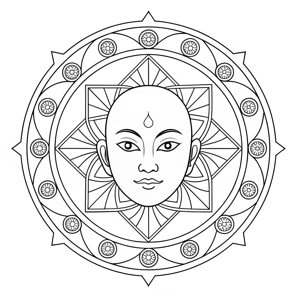 Human Face Mandala Coloring Page #039