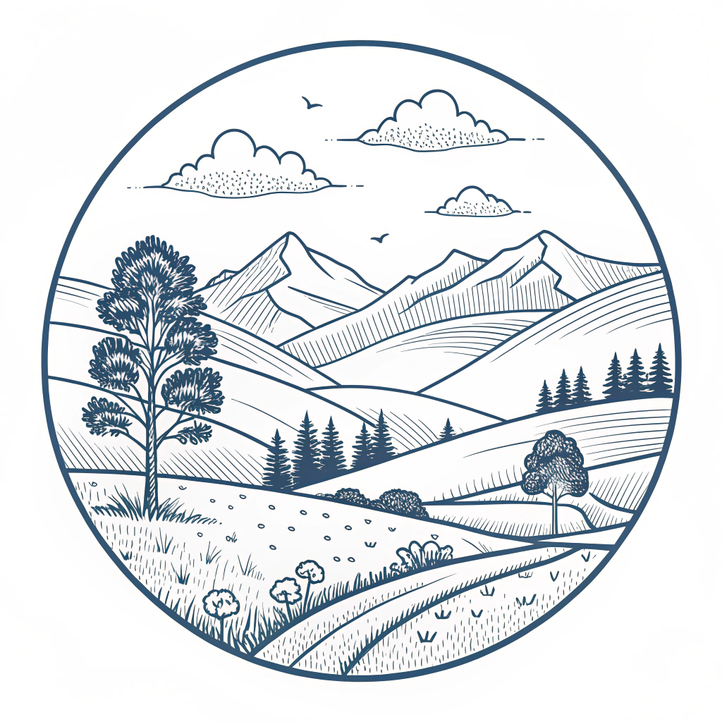 High-quality adult coloring page featuring peaceful natural landscapes, including mountains, rivers, forests, and scenic outdoor views. Designed with clean black line art and open spaces for relaxing and enjoyable coloring. Created for stress relief, mindfulness, and creative expression. Suitable for printable coloring, framing, or digital coloring use.