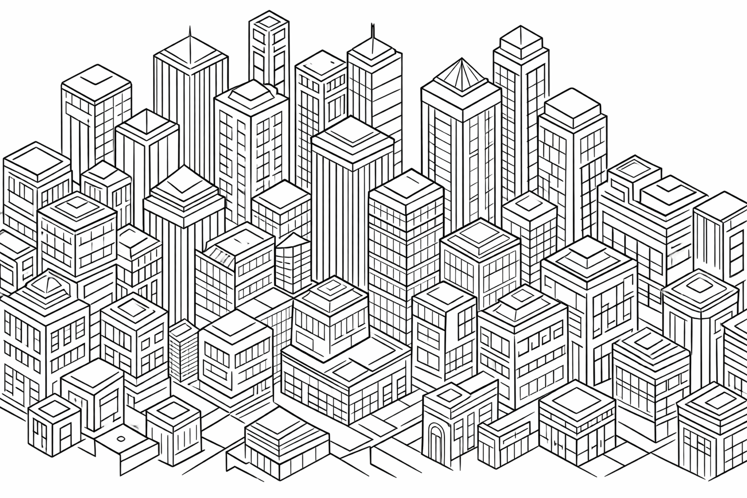 Bring the bustling cityscape to life with our Urban Architectural Landscape Coloring Sheet. With its detailed depiction of city buildings, this pattern is a fantastic way to escape into a world of imagination and color.